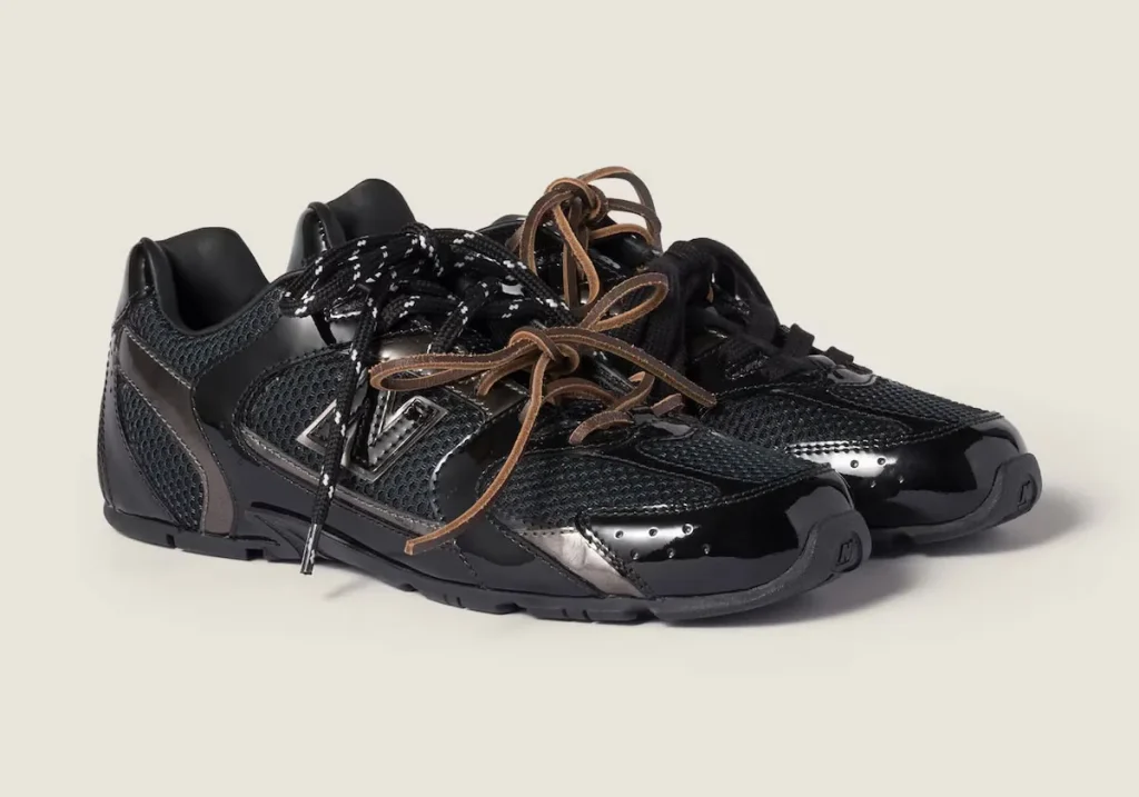 For Autumn 2025, the label brings the 530 closer to the standard model with three mesh-based editions, reflecting the materials used across New Balance’s regular designs. The highlight of the line-up is an all-black version crafted with glossy patent leather and finished with rugged brown rope laces.