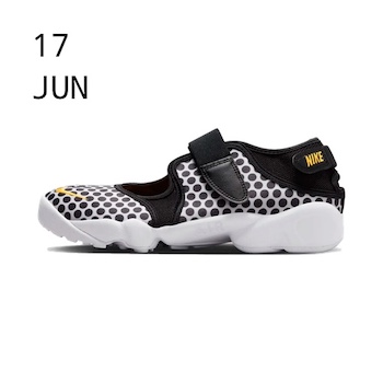 With repetition comes perfection—and polka dots are the most perfect repetition we can think of. Grounded in an all-white sole and balanced with black mesh, this Air Rift lets the pattern dance as you shimmy and sway through the activities of your day. Hot hits of Laser Orange complement the black-and-white visual rhythm, adding some loud colour into the mix. We have a feeling you're gonna want to repeat-wear these perfect summer shoes all season long.